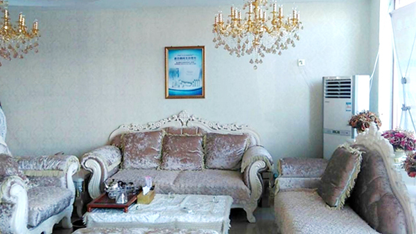 展示区的后侧是邢台嘿嘿连载APP店的休息区,从图片不难看出这一区域的装修也是花了很多心思的。古典欧式风格的吊灯、雍容的沙发、茶几,再配上立式空调、大屏电视,人性化的设计和装饰一定能给顾客舒适的体验。