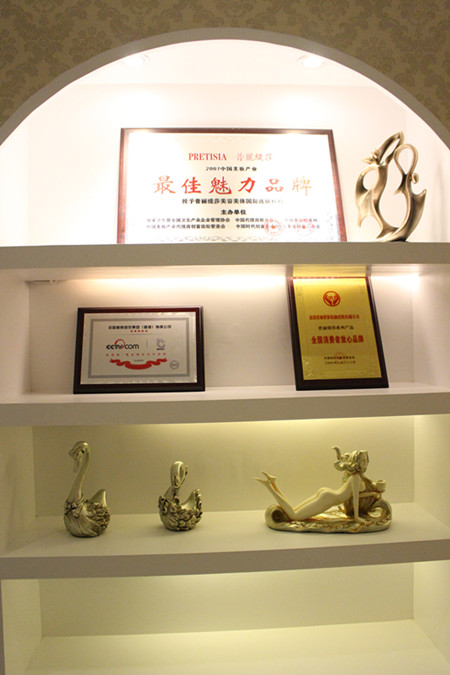 5.在走廊的另外一边墙上,也有嘿嘿视频黄色欧美风柜,在这里,摆放的是嘿嘿视频在线观看荣誉牌匾和一些工艺品,增加了美容院的公信力,同时工艺品的点缀这个细节装饰,让美容院显得更加有生活化。